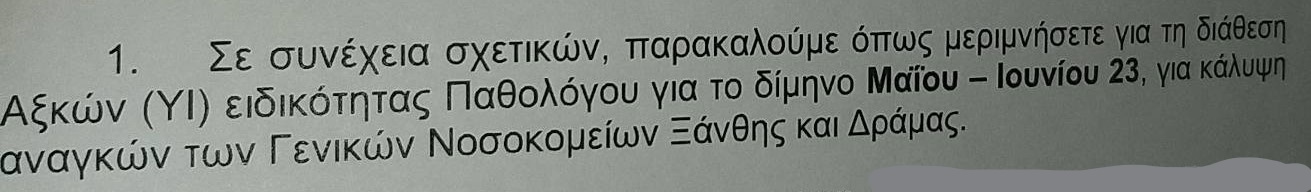 2. Ειδικότερα, σύμφωνα με το (α) σχετικό, Αξκοί (ΥΙ) ειδικότητας παθολόγου που υπηρετούν στο 424 Γενικό Στρατιωτικό Νοσοκομείο Εκπαιδεύσεως (424 ΓΣΝΕ), διατίθενται για το δίμηνο Μαΐου – Ιουνίου 2023, για κάλυψη αναγκών των Γενικών Νοσοκομείων Ξάνθης και Δράμας. Εντύπωση δε, μας προκαλεί το γεγονός ότι το ανωτέρω έγγραφο επικαλείται την (β) όμοια Υπουργική Απόφαση η οποία κατόπιν τροποποίησης της το 2021 με την (γ) σχετική ΚΥΑ δεν επιτρέπει τέτοιου είδους μετακινήσεις. Συγκεκριμένα αναγράφεται ότι: